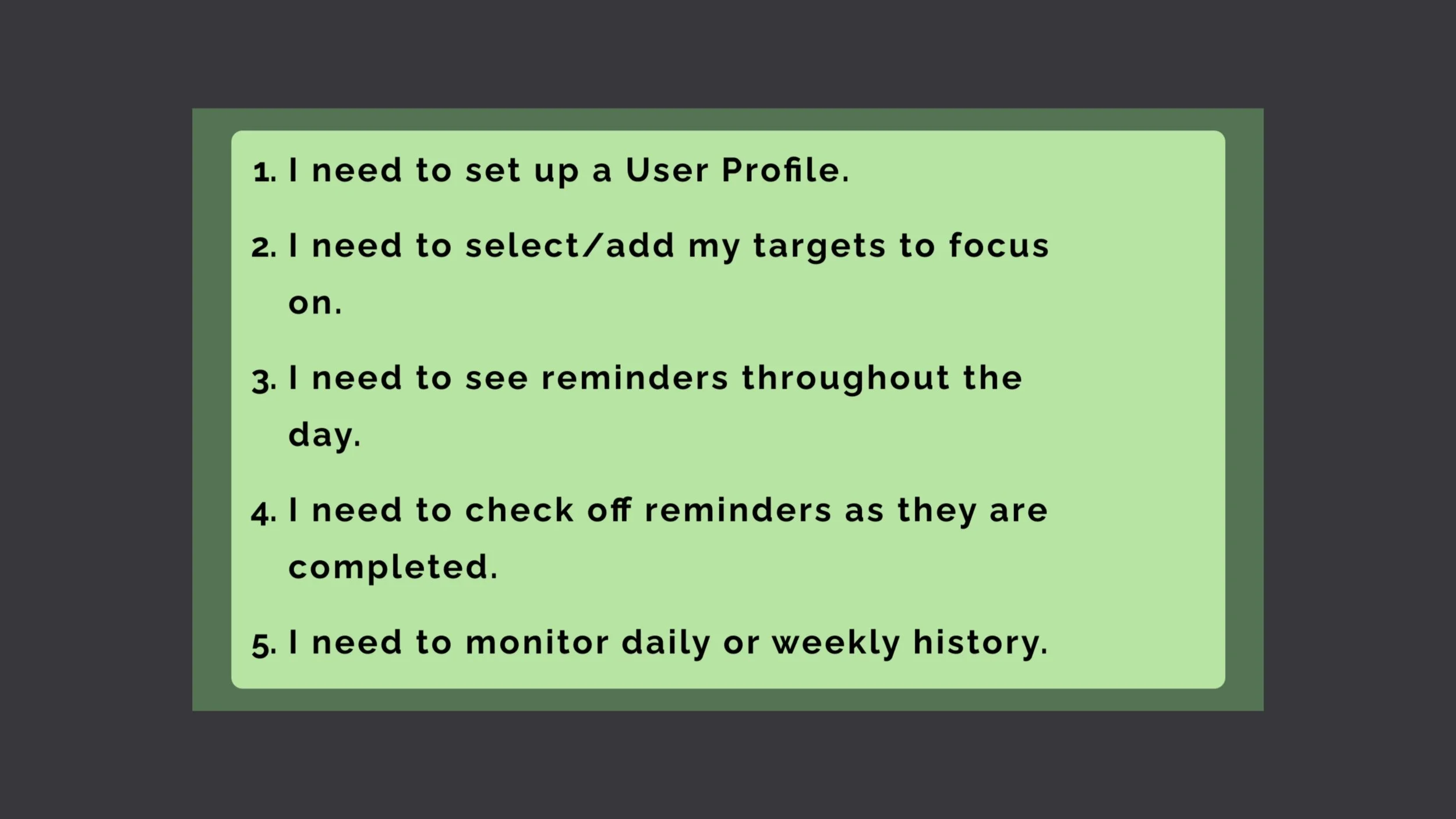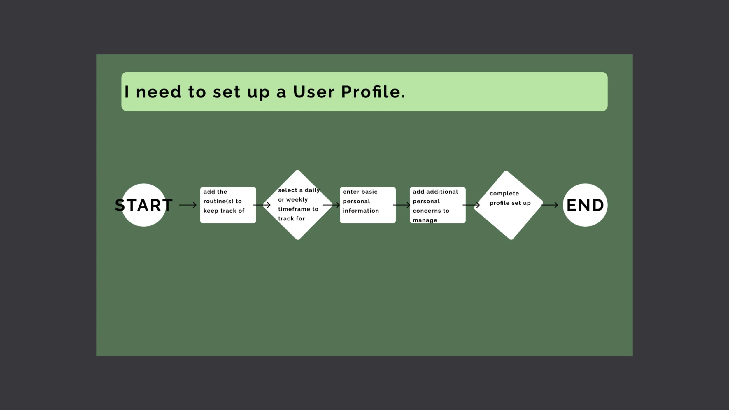 After I laid out all the potential options on paper, I was able to narrow my scope down to what was absolutely necessary to complete the User’s routine tracking needs.