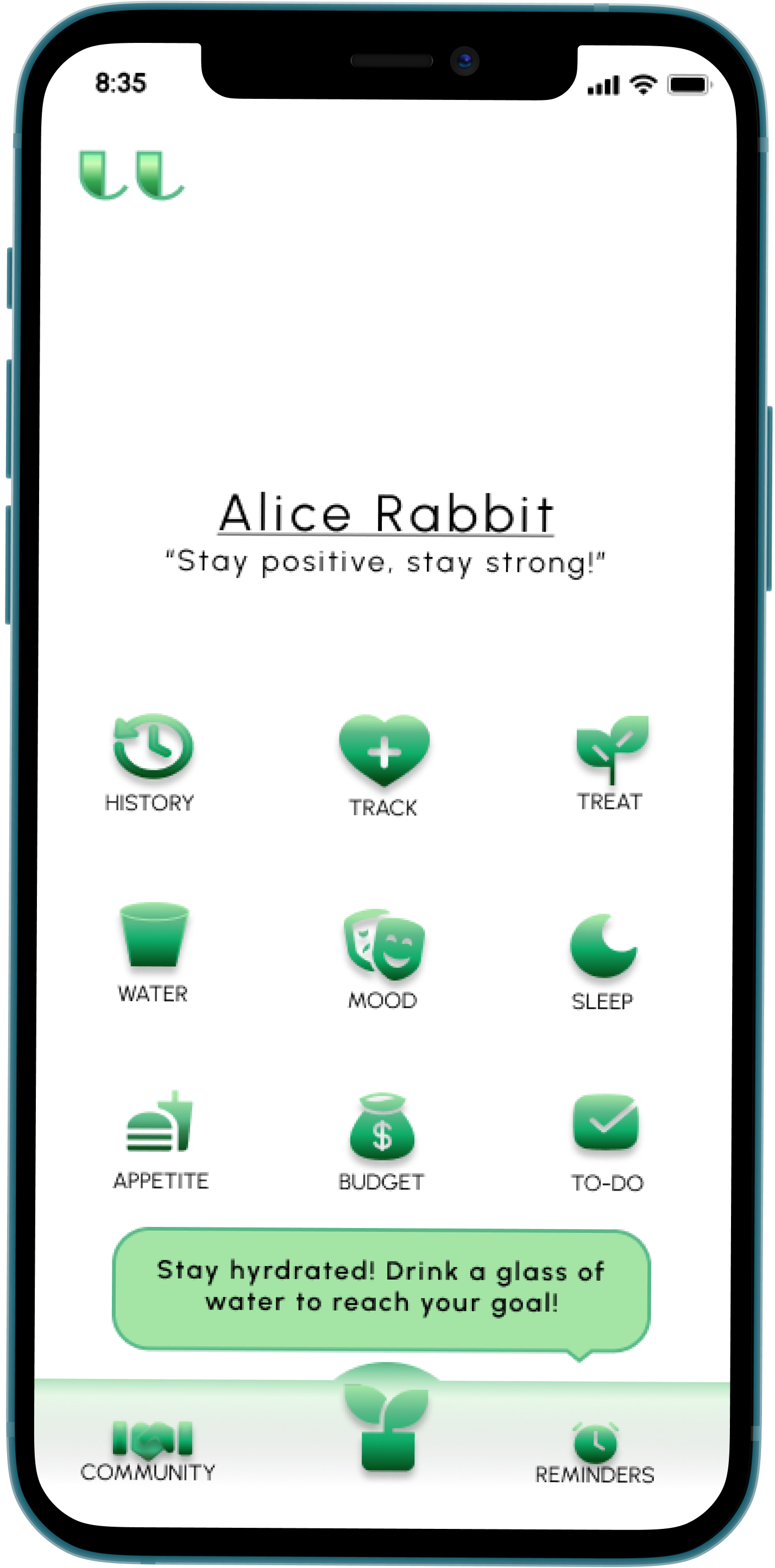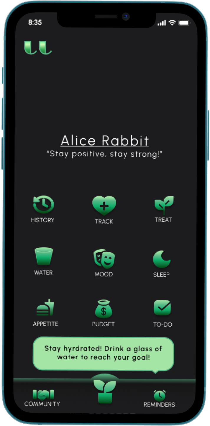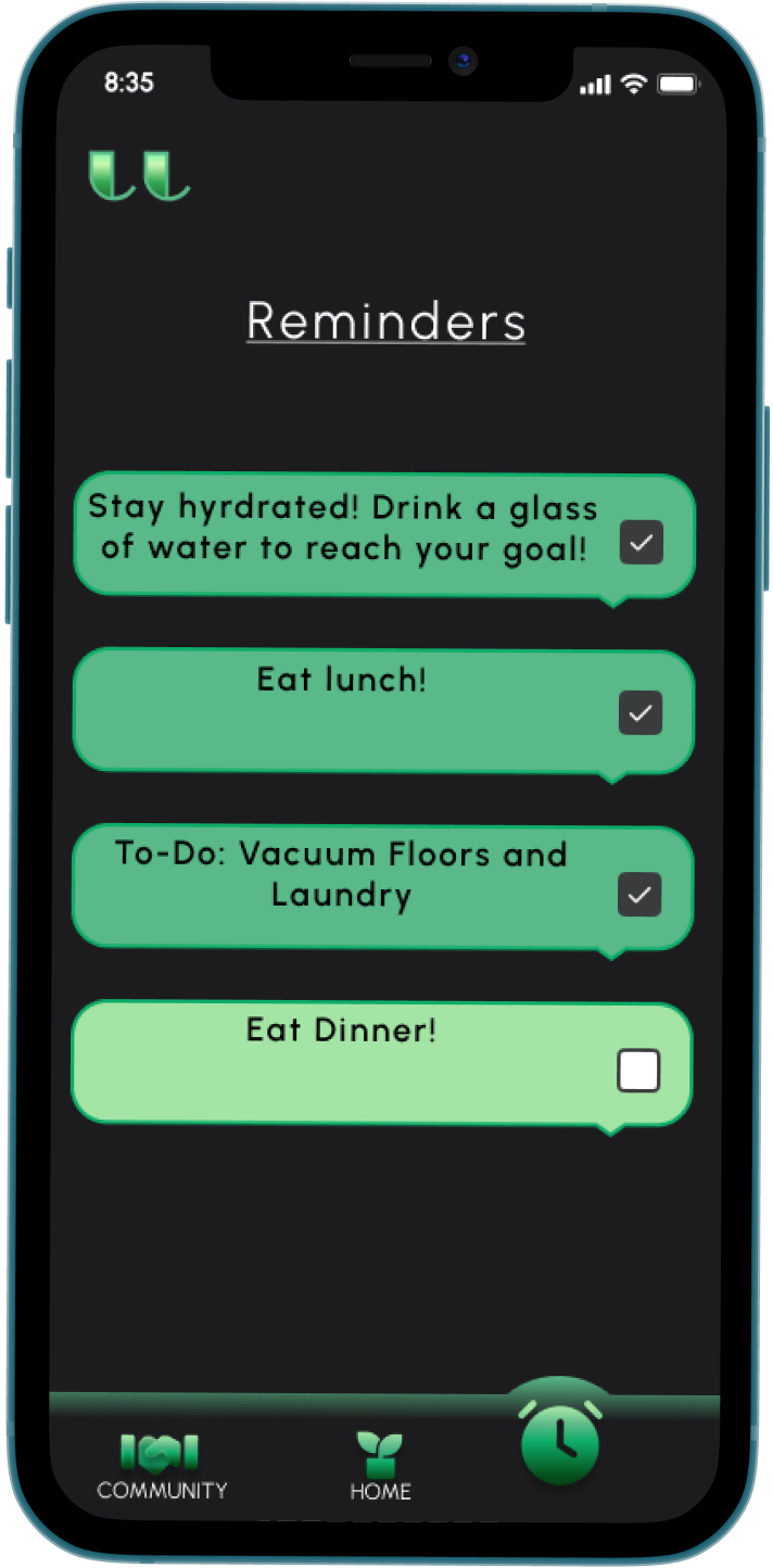 A daily task list of reminders and goals will give patients the ability to stay within their designated budgets, adhere to a treatment schedule, and track their positive progress easily.