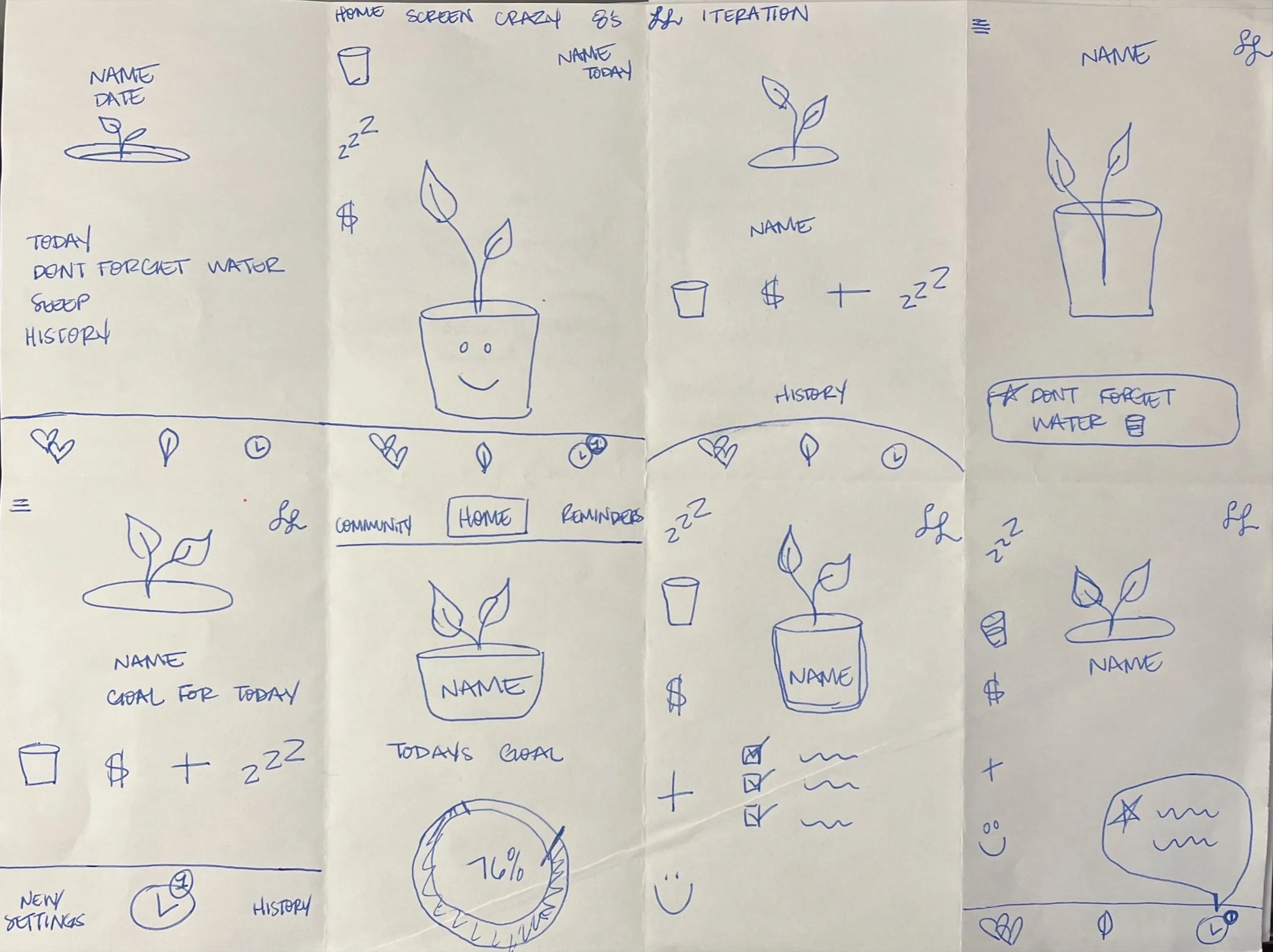 The custom animated plant progression was a bit of an overreach at this time in the design sprint. I fully plan to bench this concept and iterate on it in later development stages when I have more time to spend in Adobe After Effects.