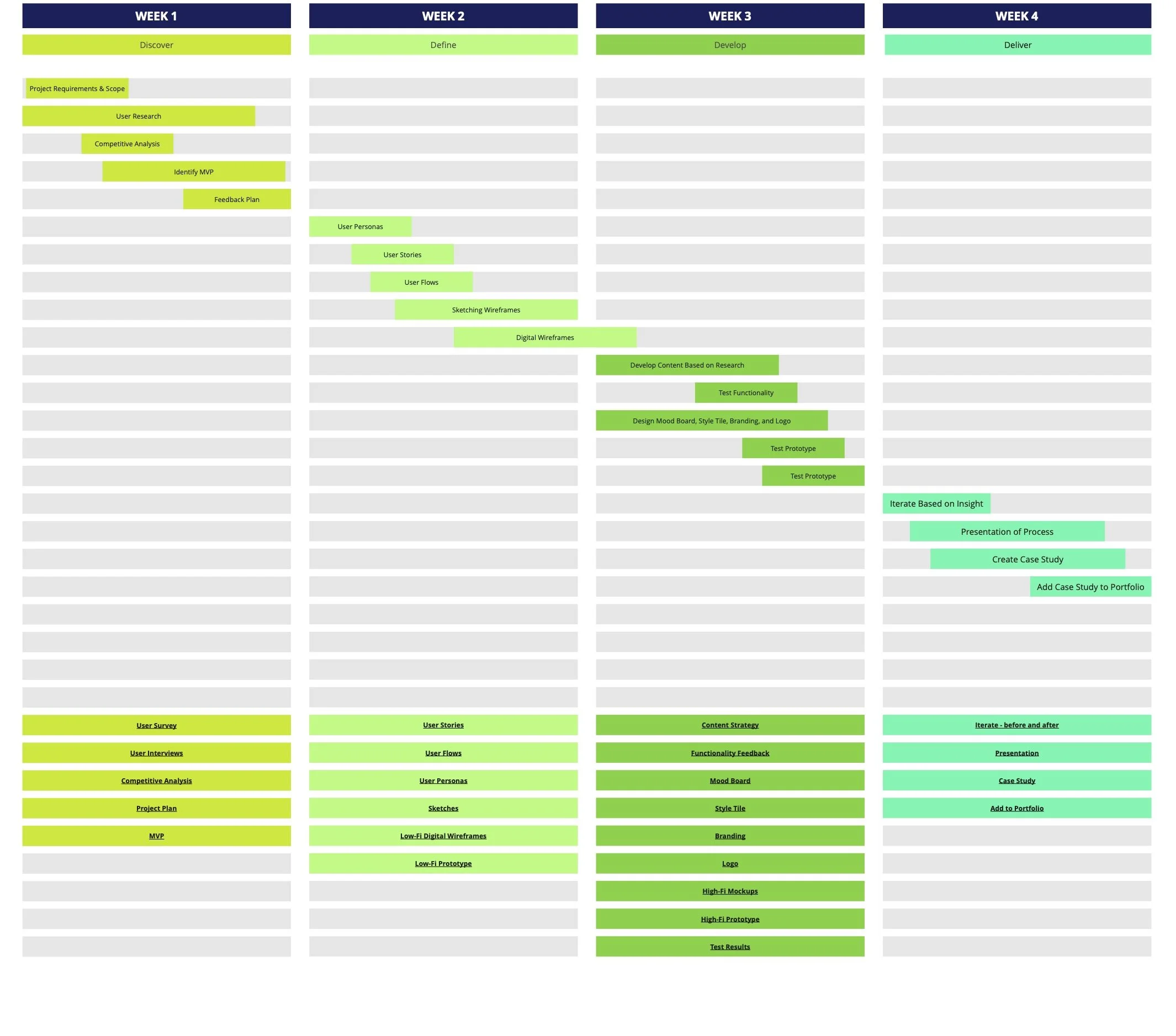 Before diving into the project itself, I outlined the expected timeframe for the design process to be completed.