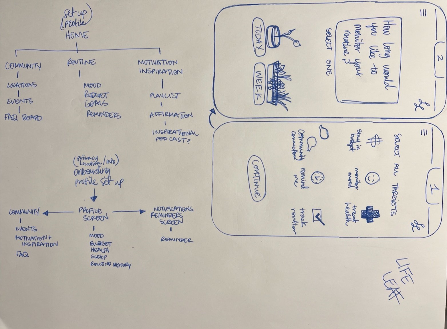 A key factor to a successful product is understanding the audience and gathering extensive research data from that audience. Before designing digitally I worked with pen and paper, allowing a loose and quick flow of ideas for the next phases. Even as robust as an app like this could be, I forced myself not to stray from the original minimum viable product requirements laid out in the beginning stages.